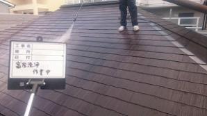 高圧洗浄でこれまでたまった屋根全体の汚れを全て取り除く、妥協無い、PROの仕事です。